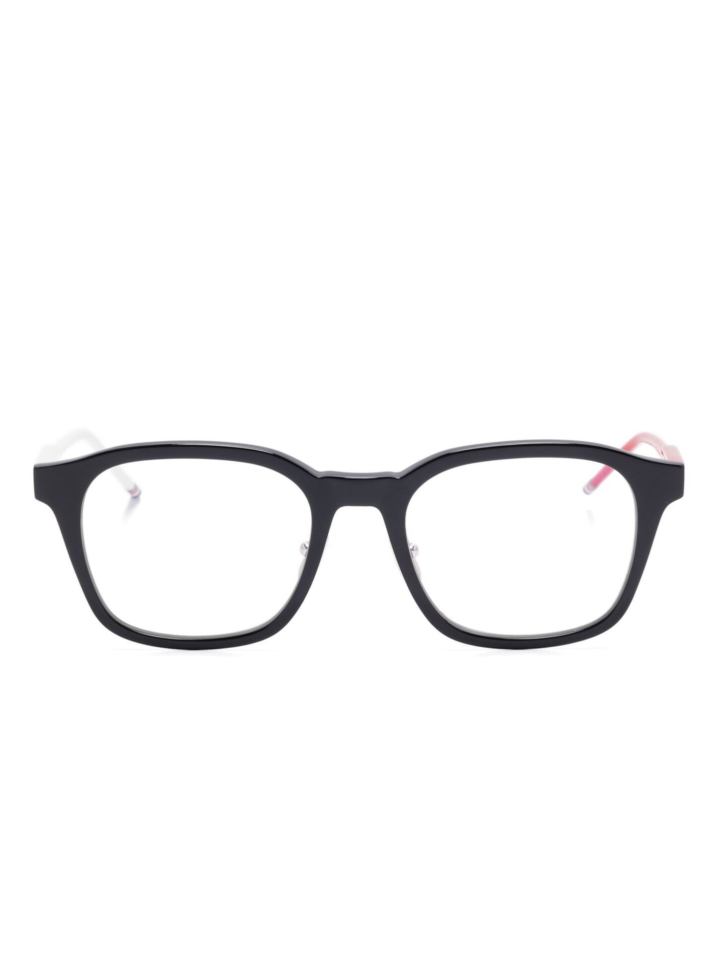 Thom Browne Eyewear is inspired by the elegance of the 40s, 50s, and 60s, featuring acetate frames in unique colours and titanium designs for strength and comfort. With signature details like leather accents, metal side cups, and the iconic red, white, and blue logo tips, the collection reflects timeless sophistication and craftsmanship.
